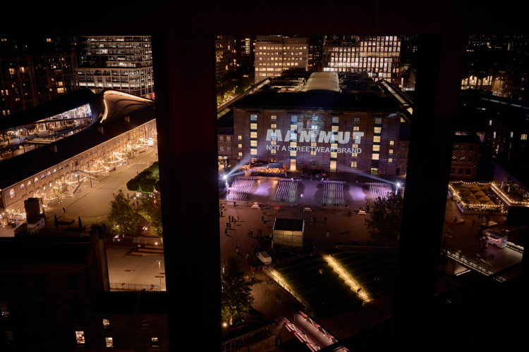 As the daylight was fading, buildings transformed into rugged cliff faces as a climber navigated the challenging terrain; audio guided the audience with a score that took people from the rhythmic noise of the city to the serene sounds of nature. At the base of the projection sat an authentic basecamp experience, transporting the public to the mountains where they could experience the brand's offering whilst gearing up on expert advice from mountain guides from the Mammut Mountain School for their next adventure.