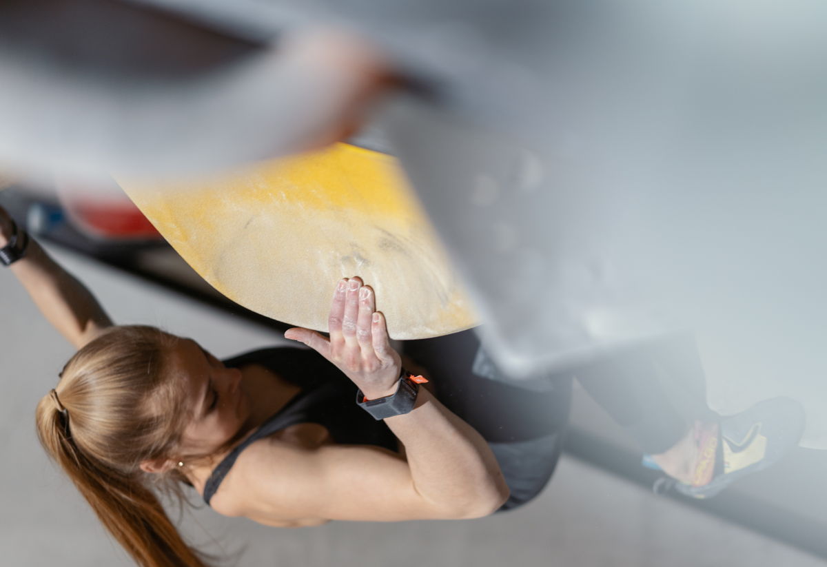 The tracking armbands are Made in Switzerland. The patented closing mechanism is flexible and adapts immediately in the event of any swelling in your forearm when climbing. The removal of any potential distractions leaves you free to focus 100 percent on your climbing session
